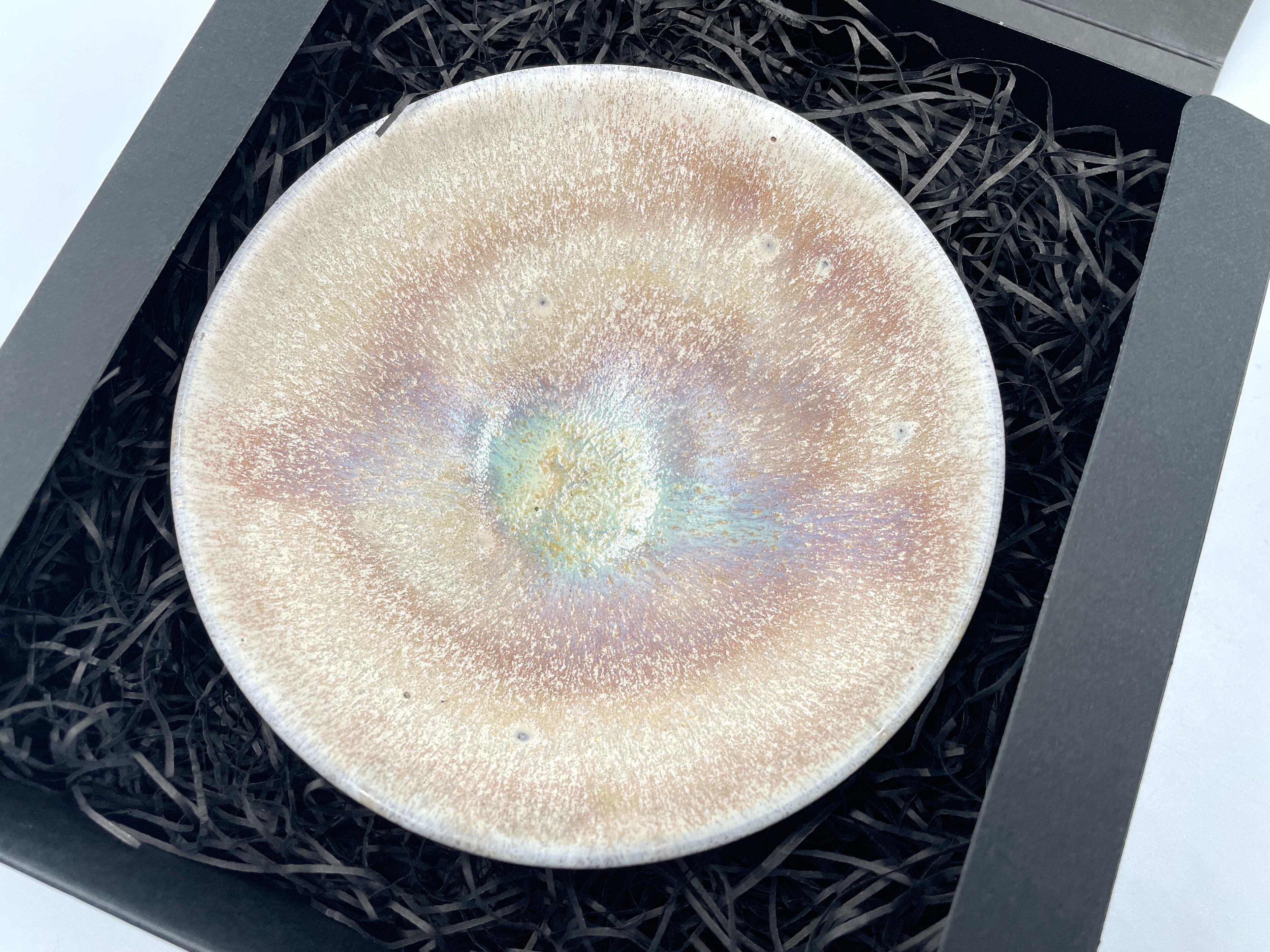 Φ12cmH4.2cm 白い結晶釉に広がる赤いオーロラが美しい、小さな器です。 窯の中で偶然生まれる結晶は一つとして同じものがなく、 それぞれが異なる表情を持っています。 お菓子や取り皿としてはもちろん、 アクセサリーや小物を置く器としてもおすすめです。 日常の中に、さりげない特別感を添えてくれます。 ※電子レンジ・食洗機の使用はお控えください。